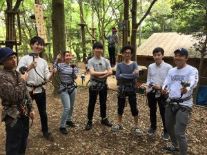 フォレストアドベンチャーとは、木と木の間を特殊な器具を使って、歩いたり登ったり滑ったりこけたり笑ったり叫んだりするアクティビティだ。