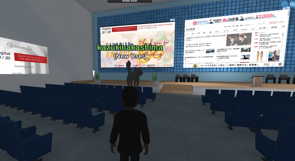 歩き回って、他のアバターに近づくと実際に会話も聞こえてきます。