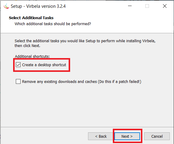 PCデスクトップにショートカットを作りたい場合は、[Create a desktop shortcut]にチェックを入れたまま[Next]をクリックします。