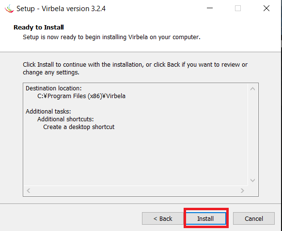 ※Windowsの場合、デフォルトでは[ダウンロード]フォルダーに[VirbelaSetup.exe]が保存されています。