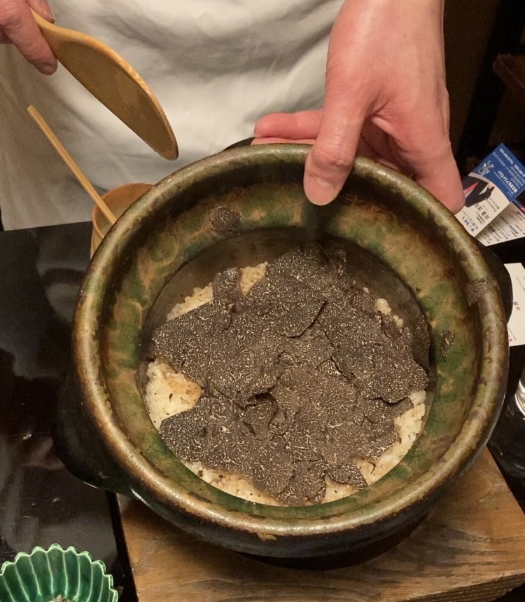 目の前でトリュフを擦って、そのままダイレクトに土鍋へ。